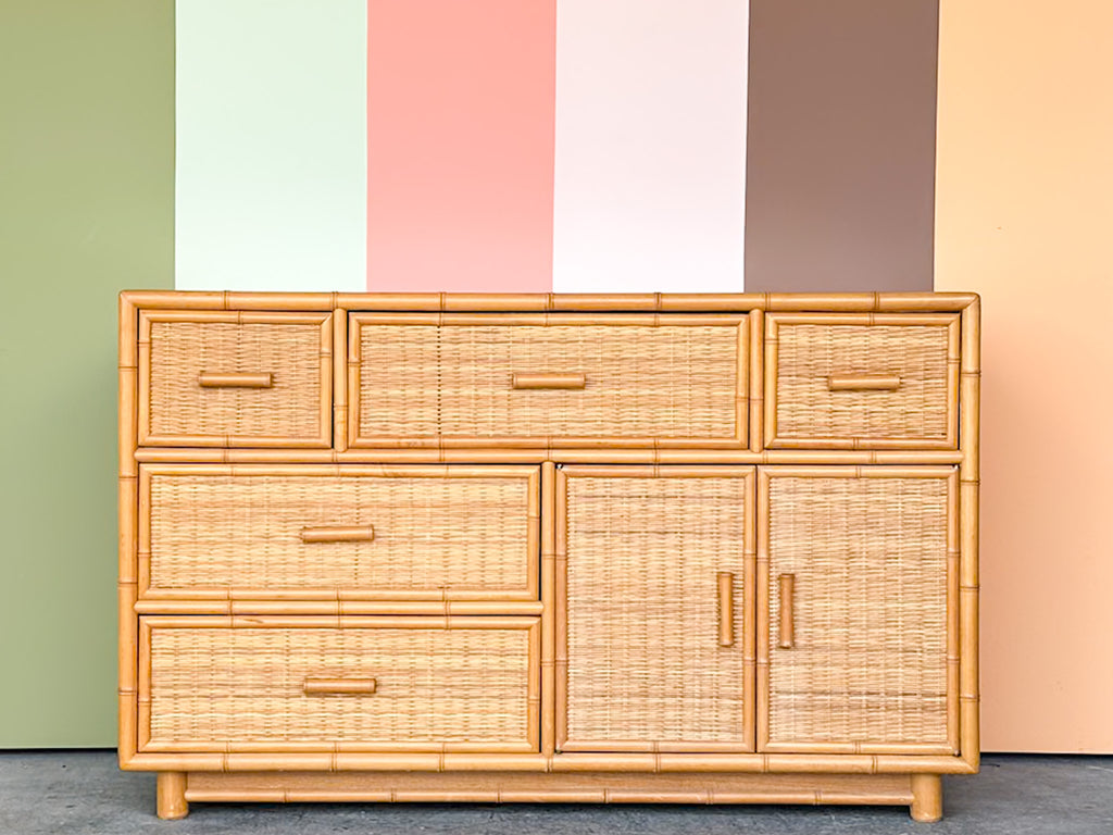 All pieces are sold in nice as found vintage condition. See photos. Dimensions: H-30” W-17.75” L-47.5”