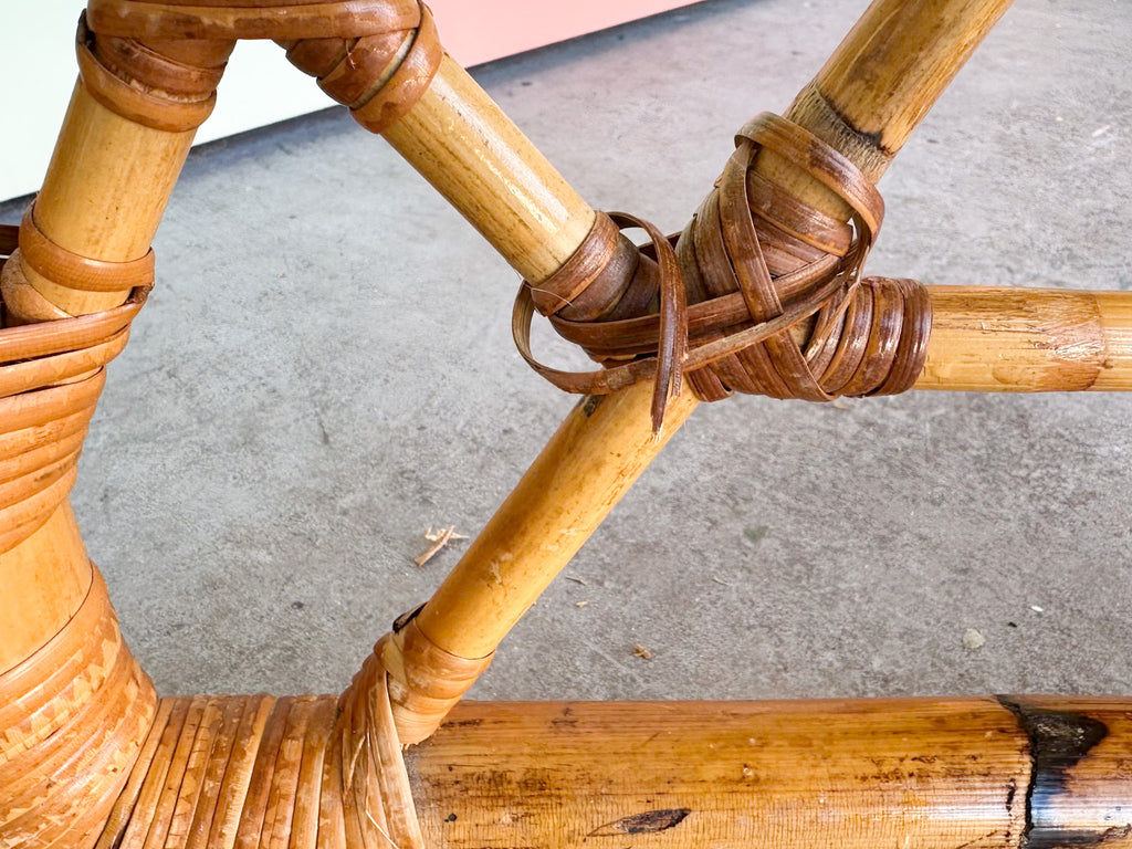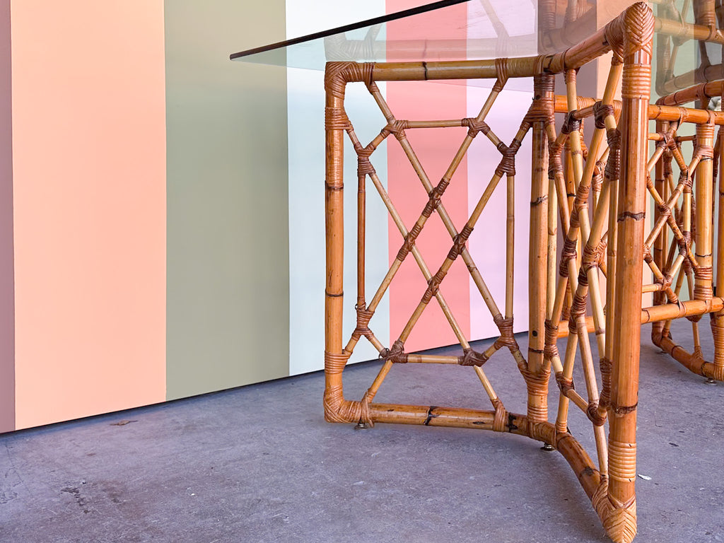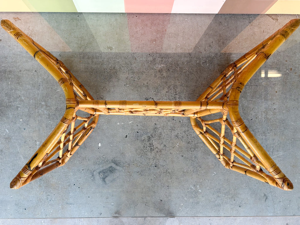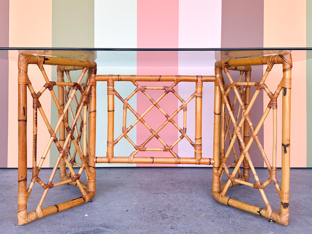 All pieces are sold in nice as found vintage condition. See photos. Dimensions: Base: H-29” W-27” L-45.5”Glass: H-36" W-0.5" L-60"