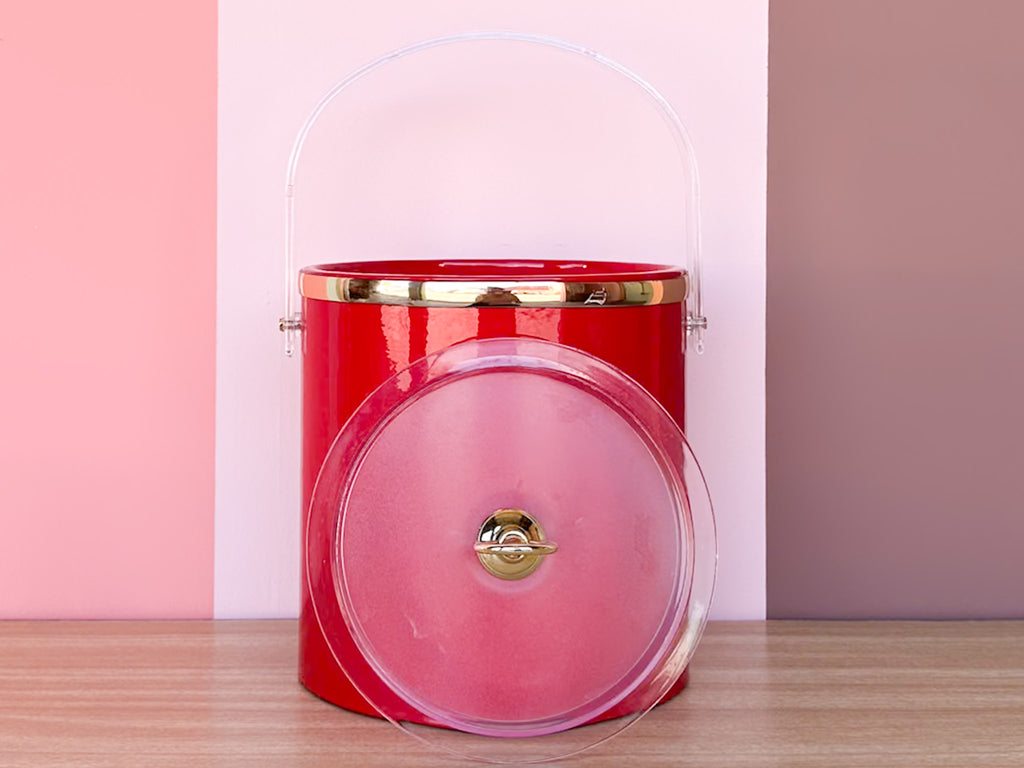Dimensions: Ice Bucket: H-13” W-8” L-8”Glassware: H-4" W-3" L-3"
