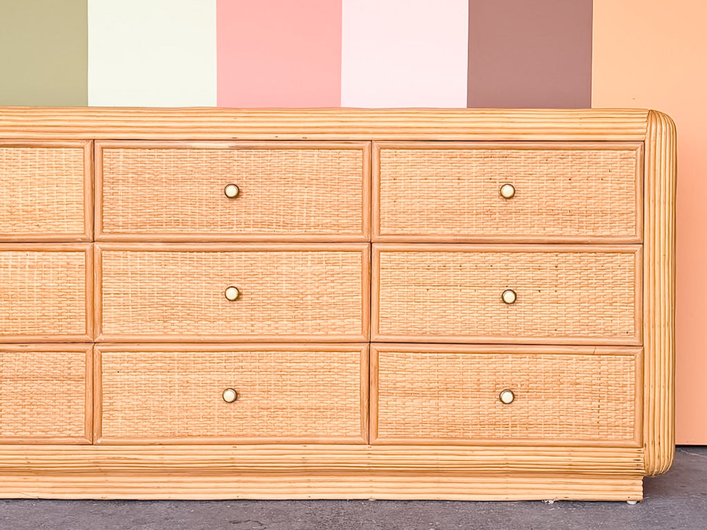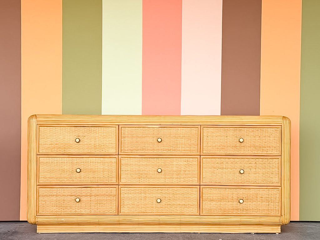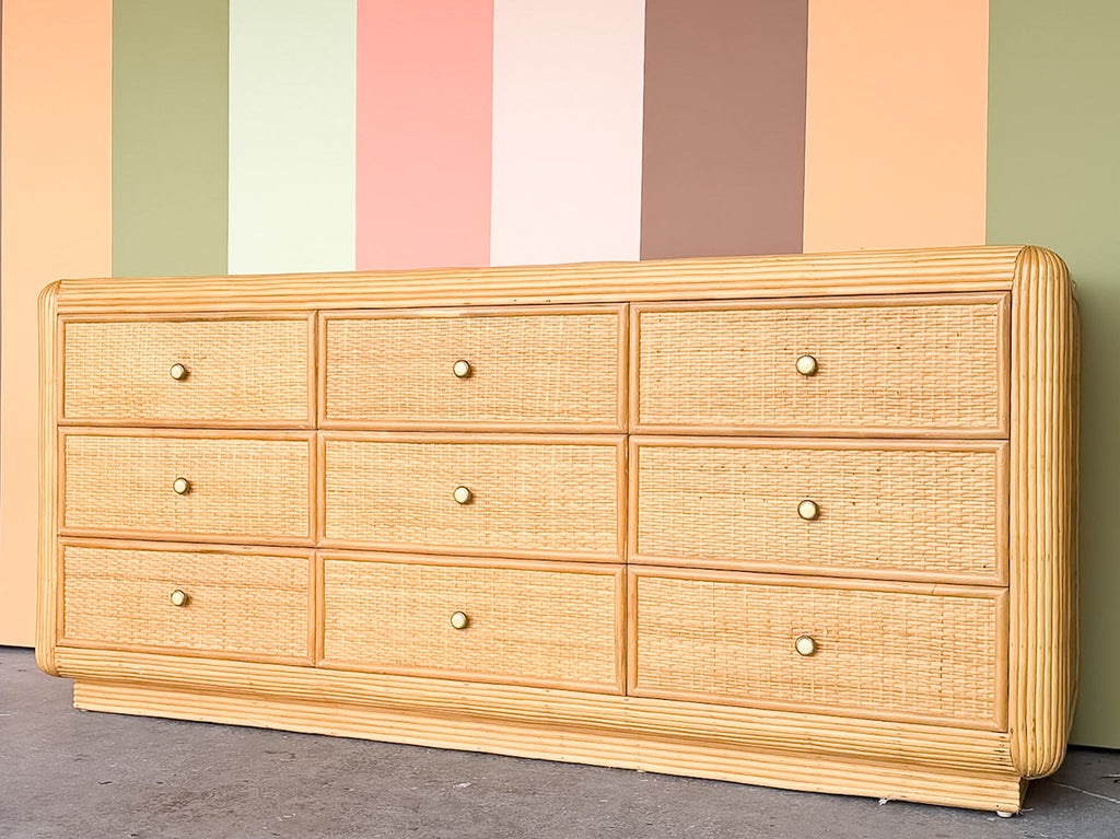 All pieces are sold in nice as found vintage condition. See photos. Dimensions: H-32.5” W-19.5” L-72”