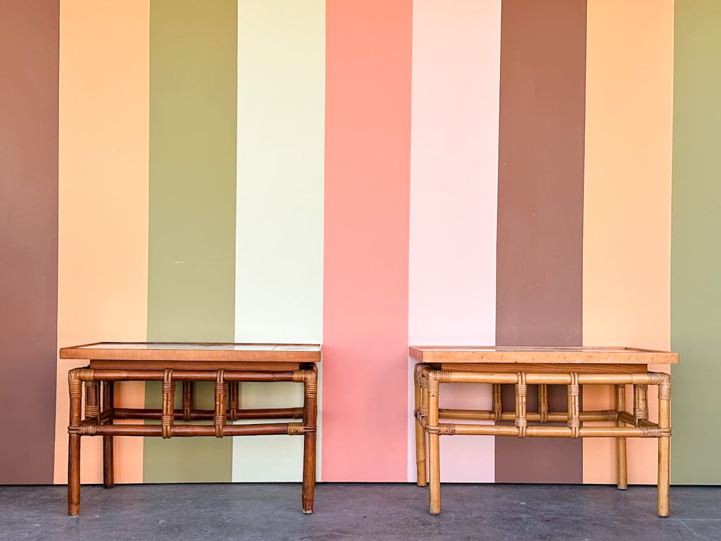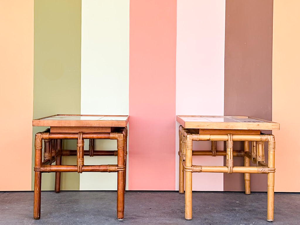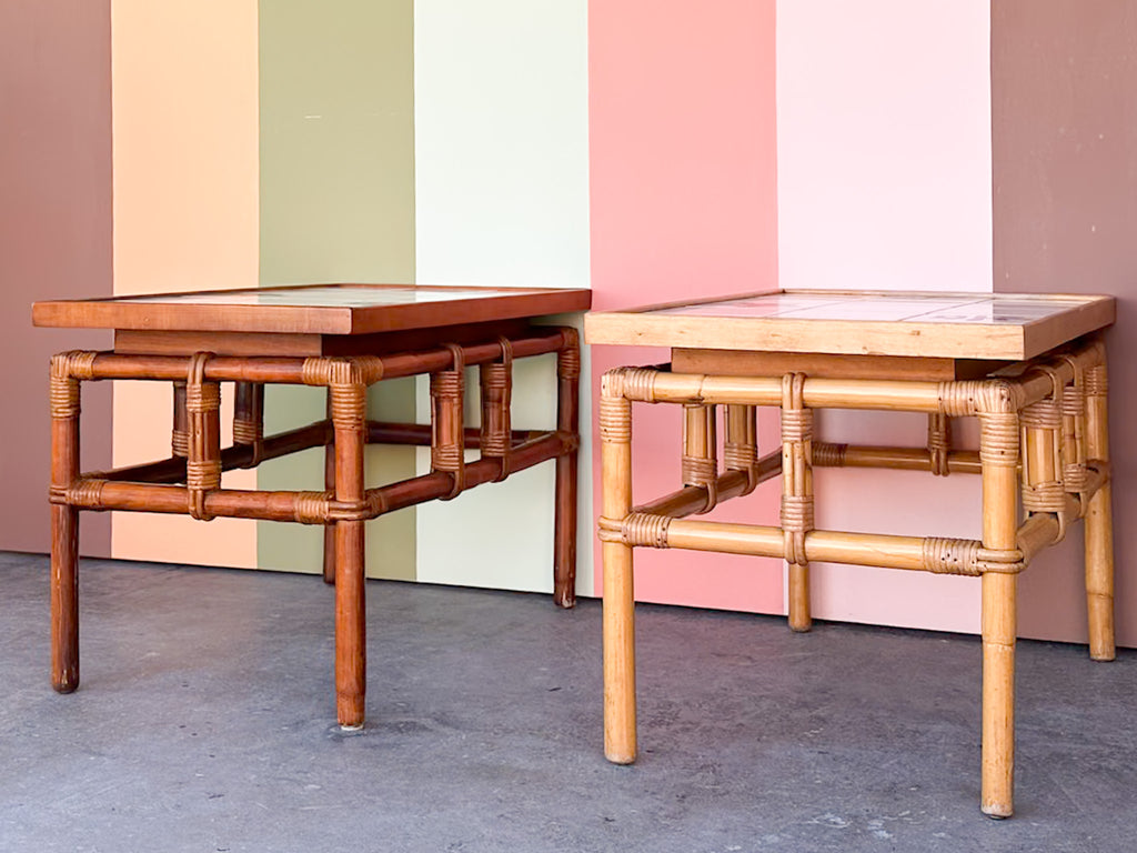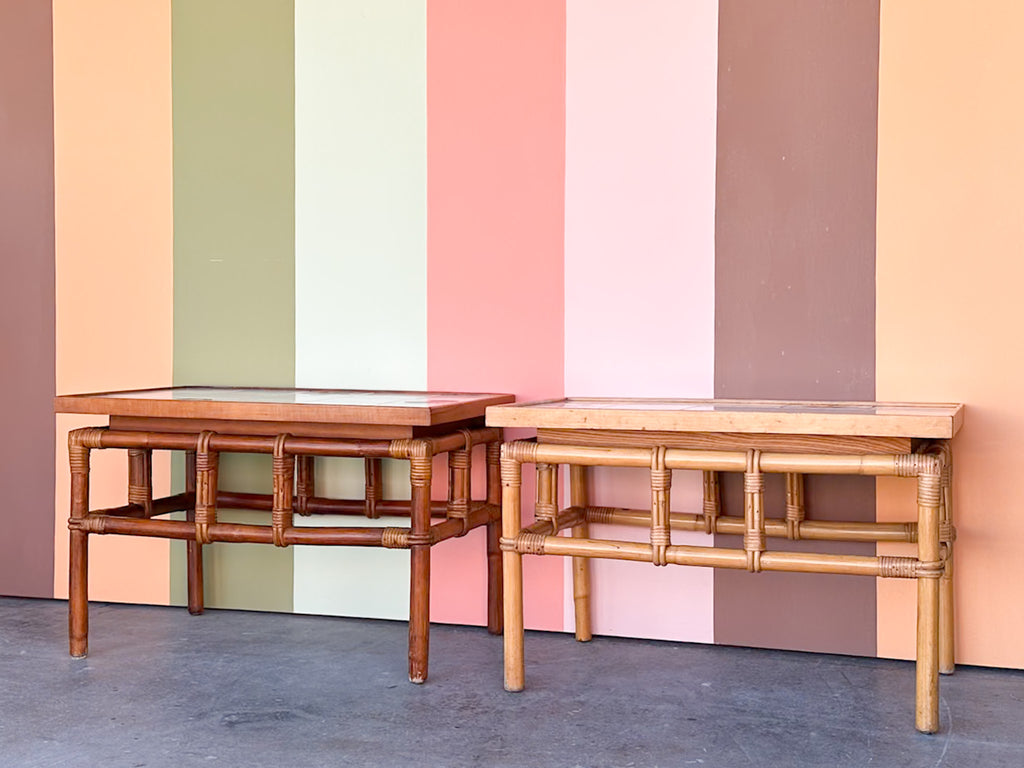 Thank you for your interest in the Pair of John Wisner for Ficks Reed Rattan Tile Top Side Tables