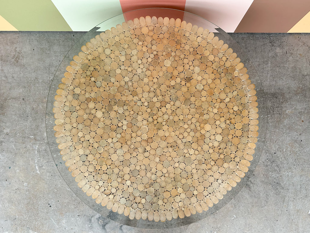 All pieces are sold in nice as found vintage condition. See photos. Dimensions: Base: H-16.25” W-36” L-36”Glass: H-0.5" W-39" L-39"