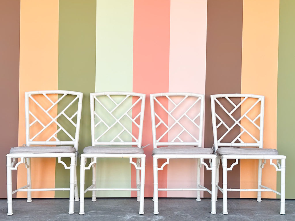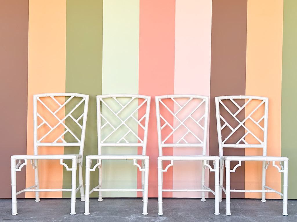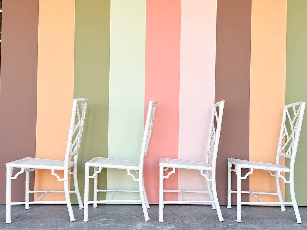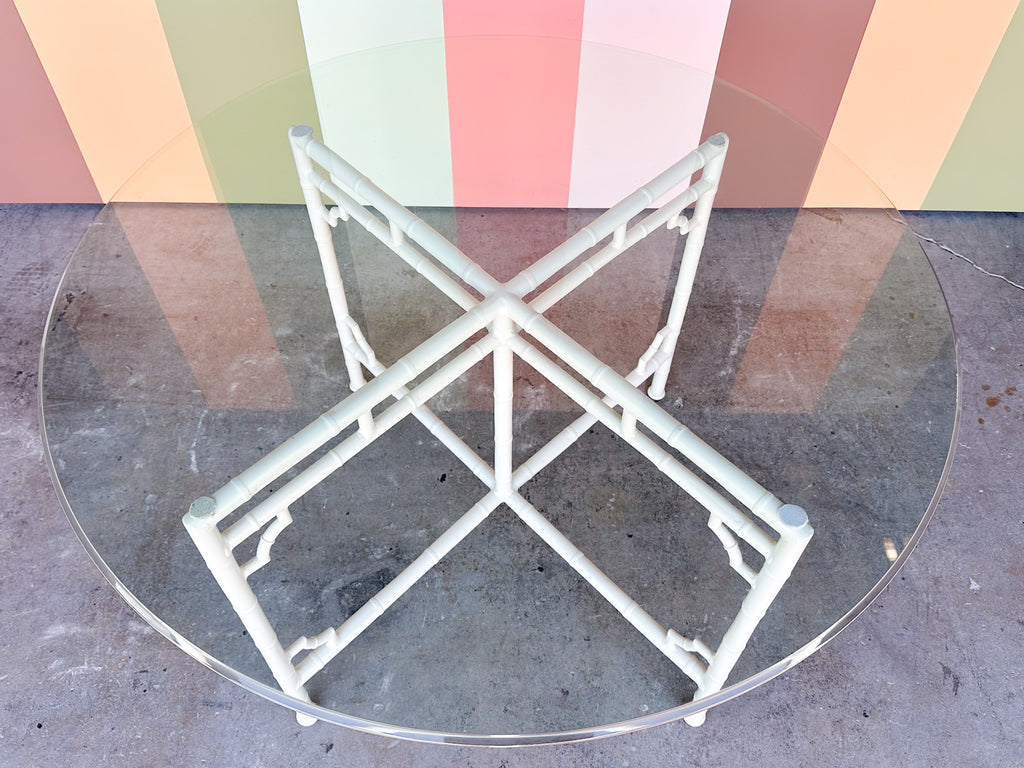 All pieces are sold in nice as found vintage condition. See photos. Dimensions: Chairs: H-35.5” W-18.5” L-18” Seat H-17"Table Base: H-28.5" W-39.5" L-39.5"Glass: H-0.5" W-48" L-48"