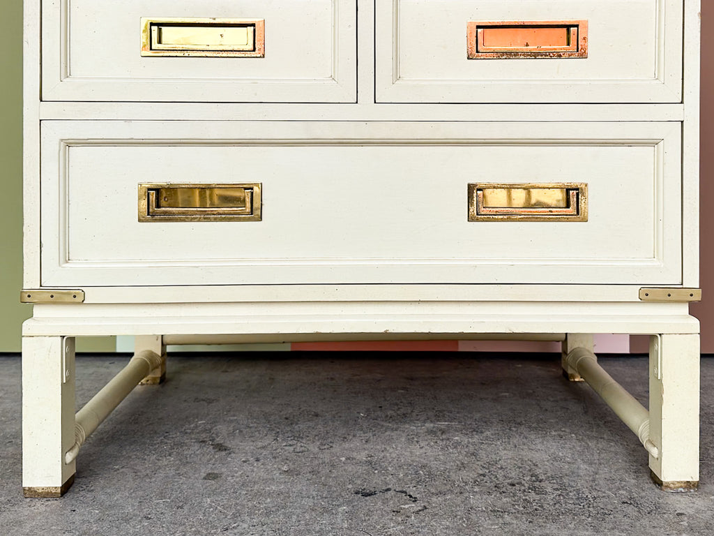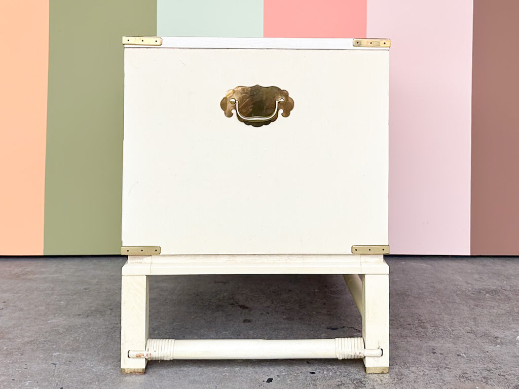 Thank you for your interest in the Oversized Campaign Style Brass and Rattan Nightstand