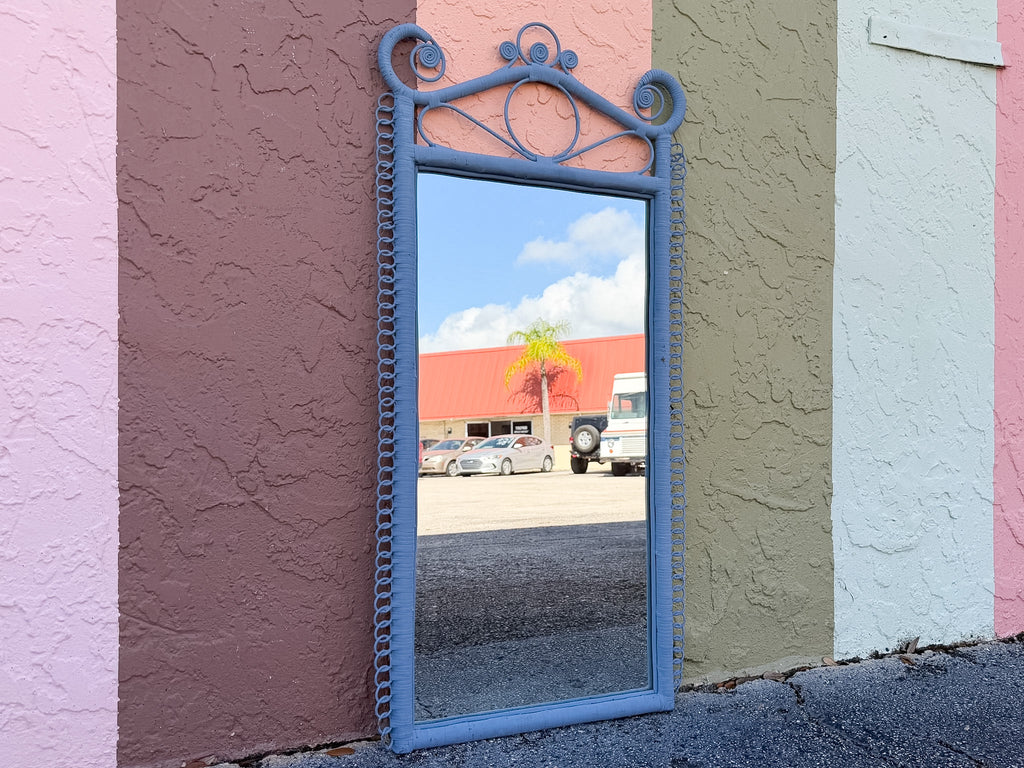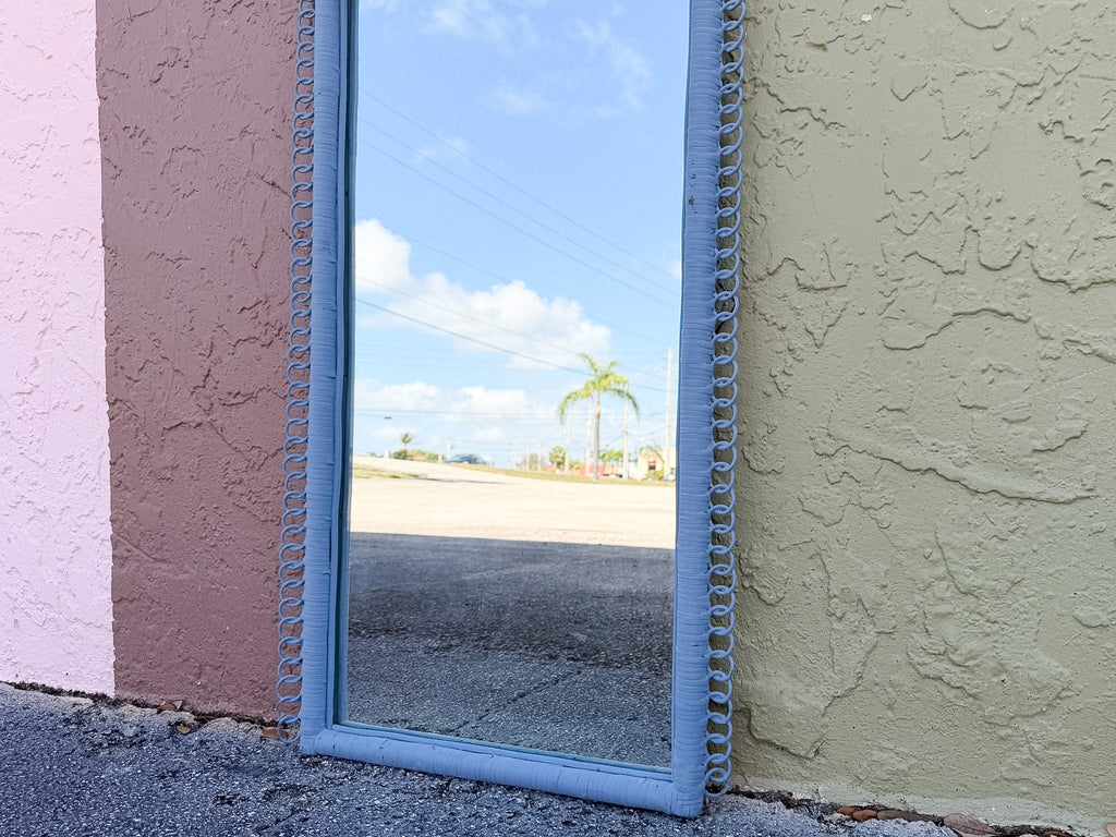 Thank you for your interest in the Painted Cornflower Blue Fiddlehead Rattan Mirror