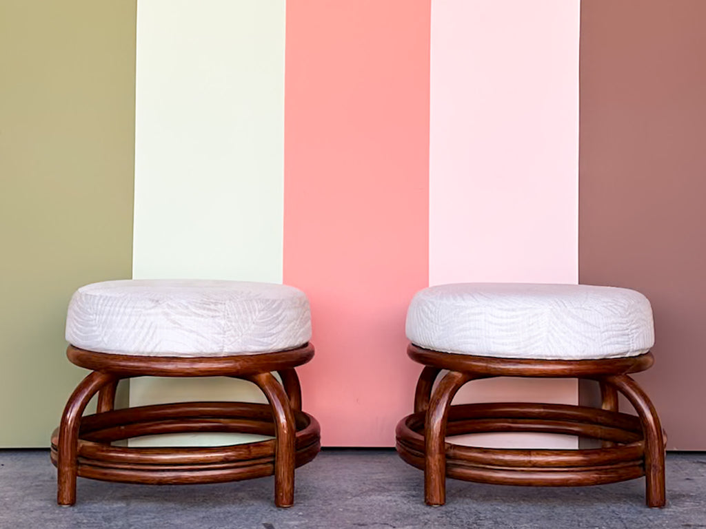 Thank you for your interest in the Pair of Cute Upholstered Rattan Ottomans