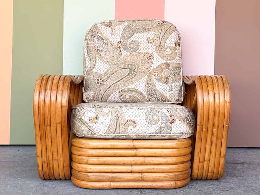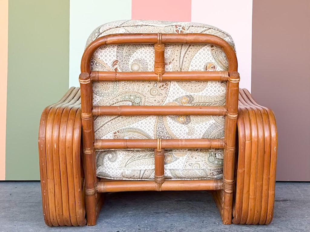 All pieces are sold in nice as found vintage condition. See photos. Dimensions: Chair: H-29” W-33.5” L-33.5”Seat H-14.5" Arm H-19.5"Ottoman: H-14" W-22" L-23"