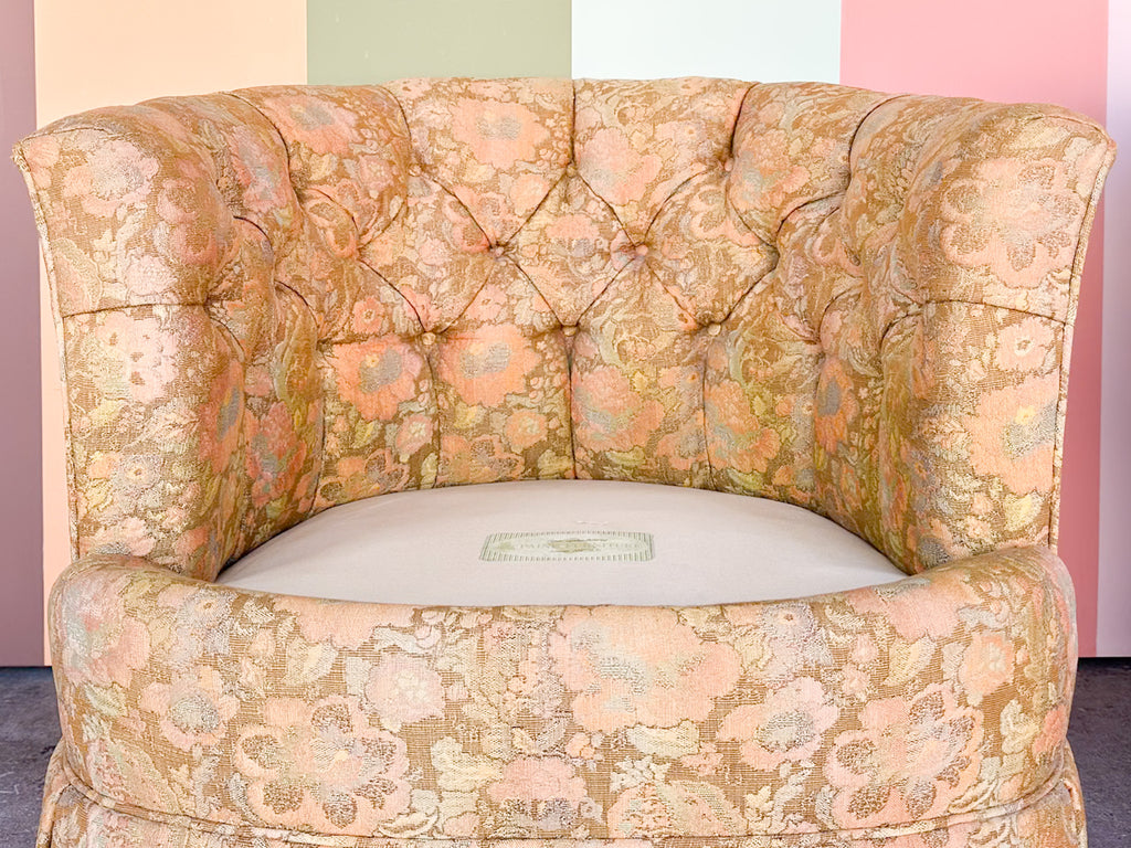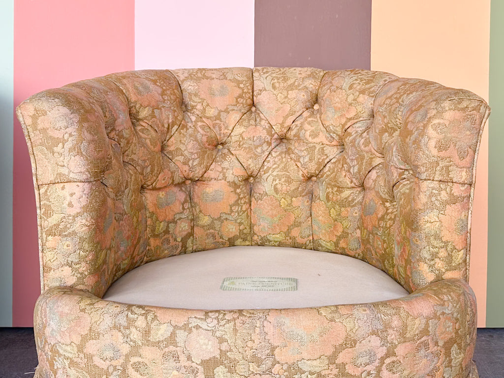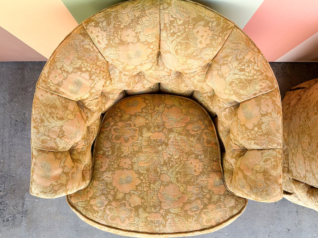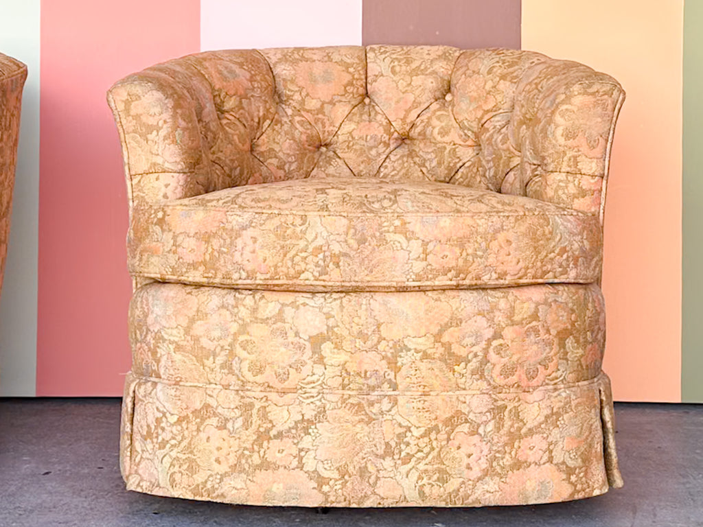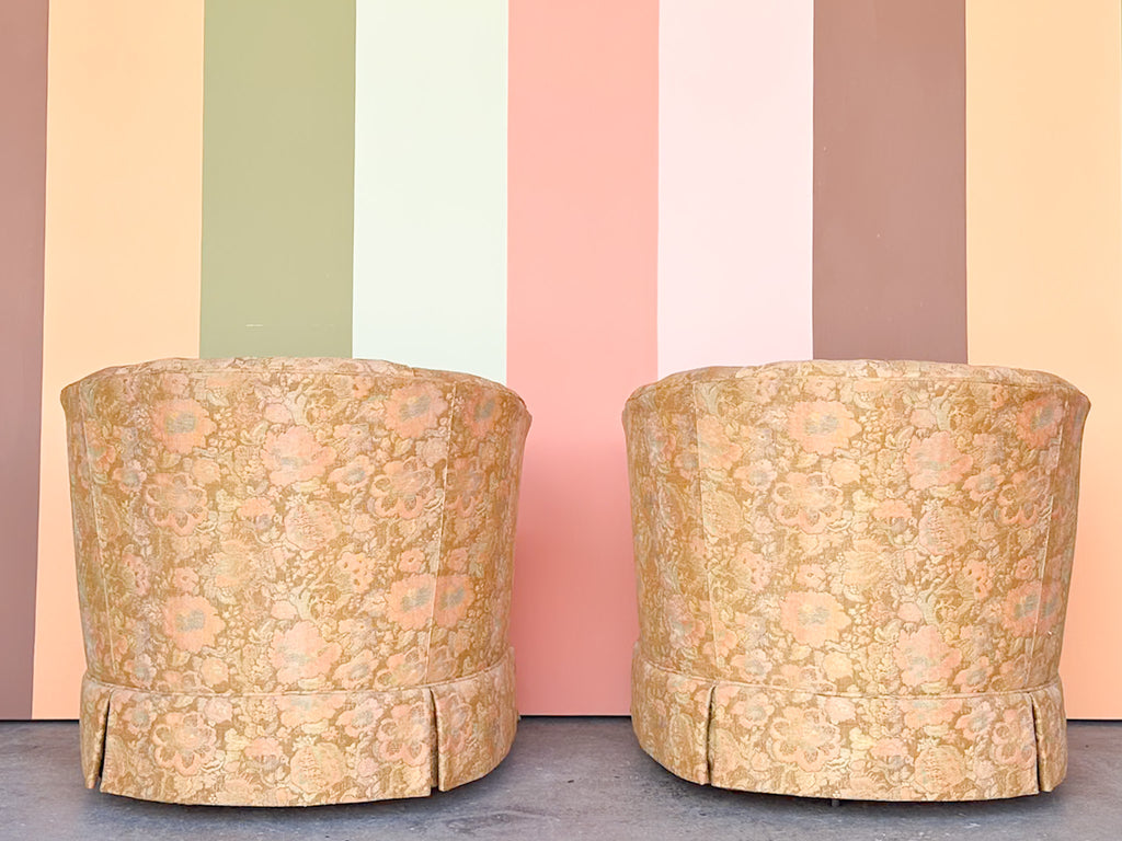 Thank you for your interest in the Pair of Golden Brocade Barrel Chairs on Castors