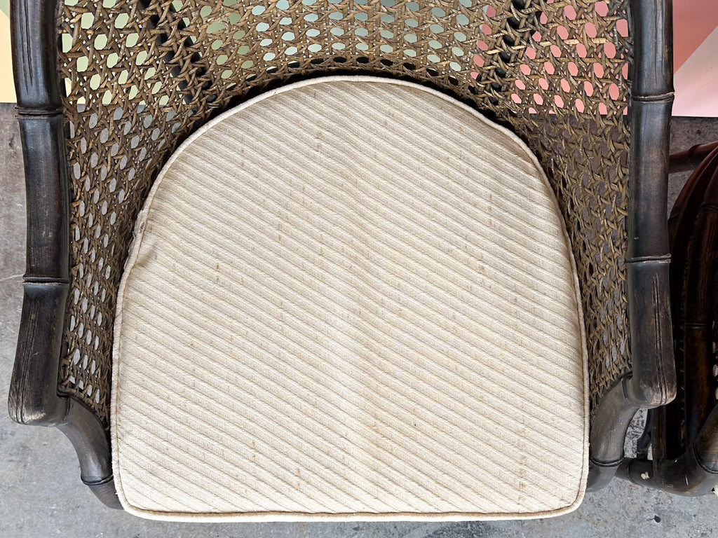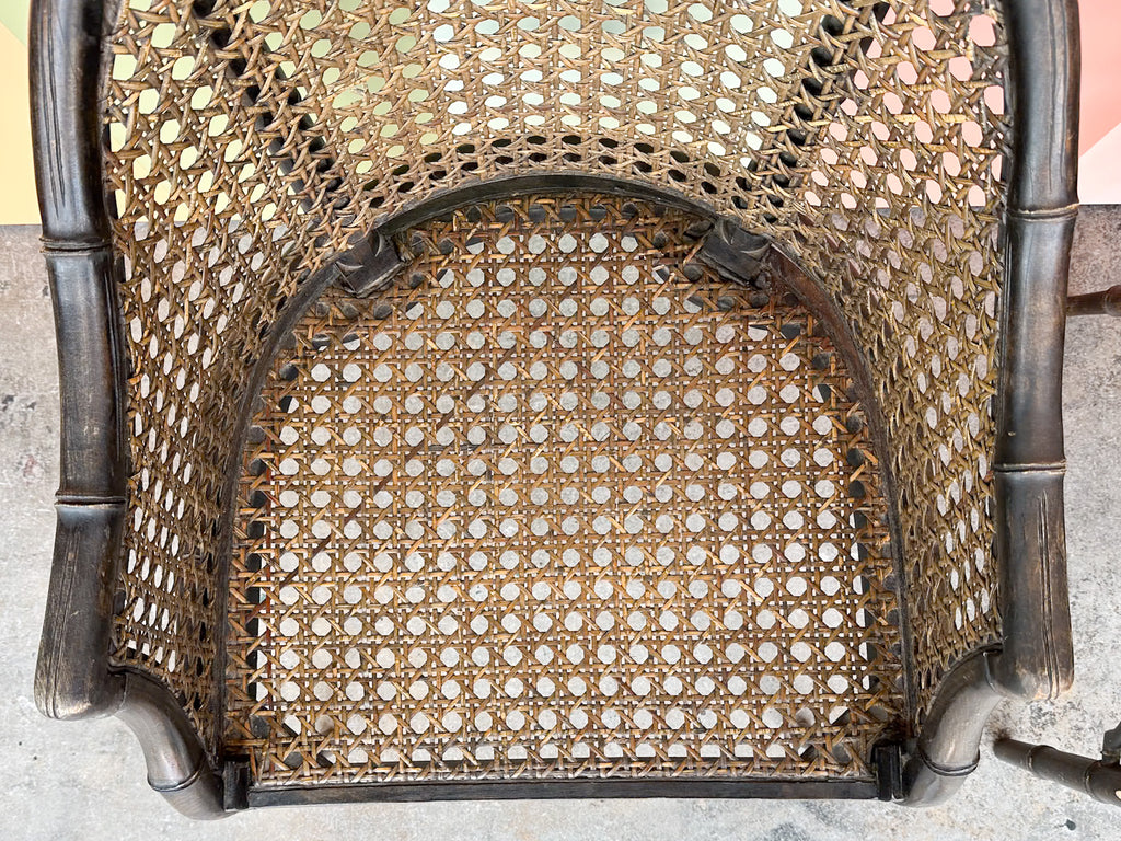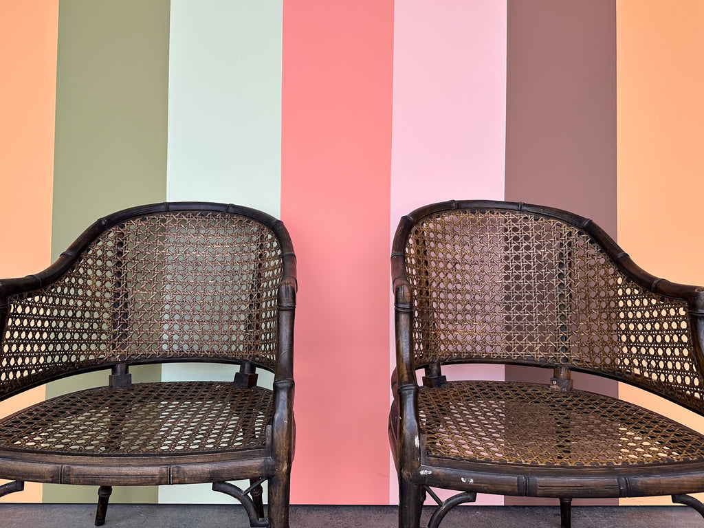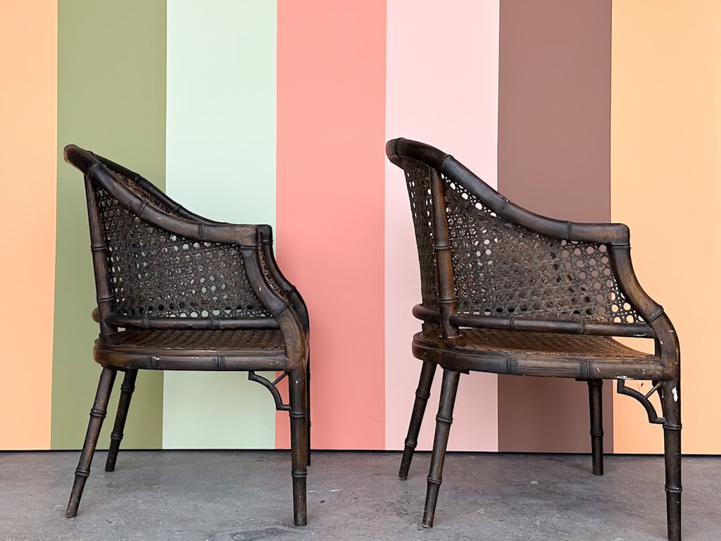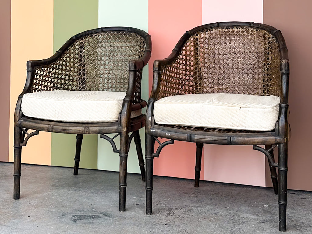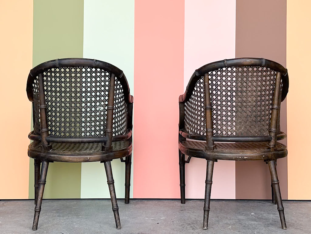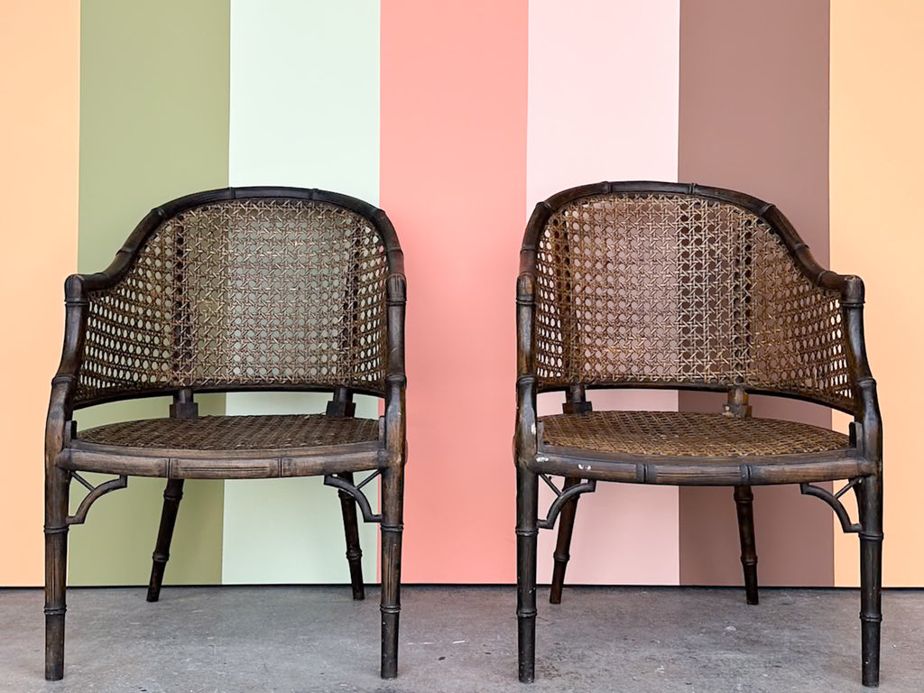 Thank you for your interest in the Pair of Handsome Cane and Faux Bamboo Barrel Chairs