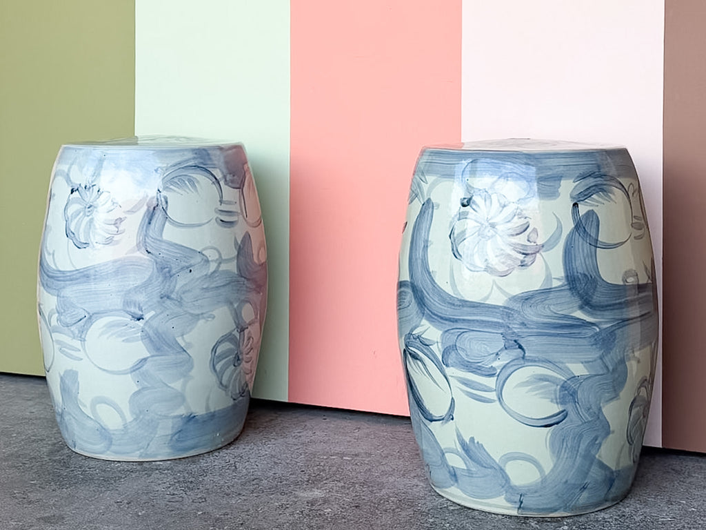 Thank you for your interest in the Pair of Modern Watercolor Porcelain Garden Seats