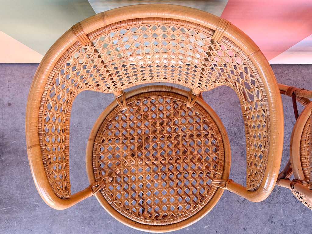 All pieces are sold in nice as found vintage condition. See photos. Dimensions: H-29.5” W-22.5” L-22” Seat H-18" Arm H-27"