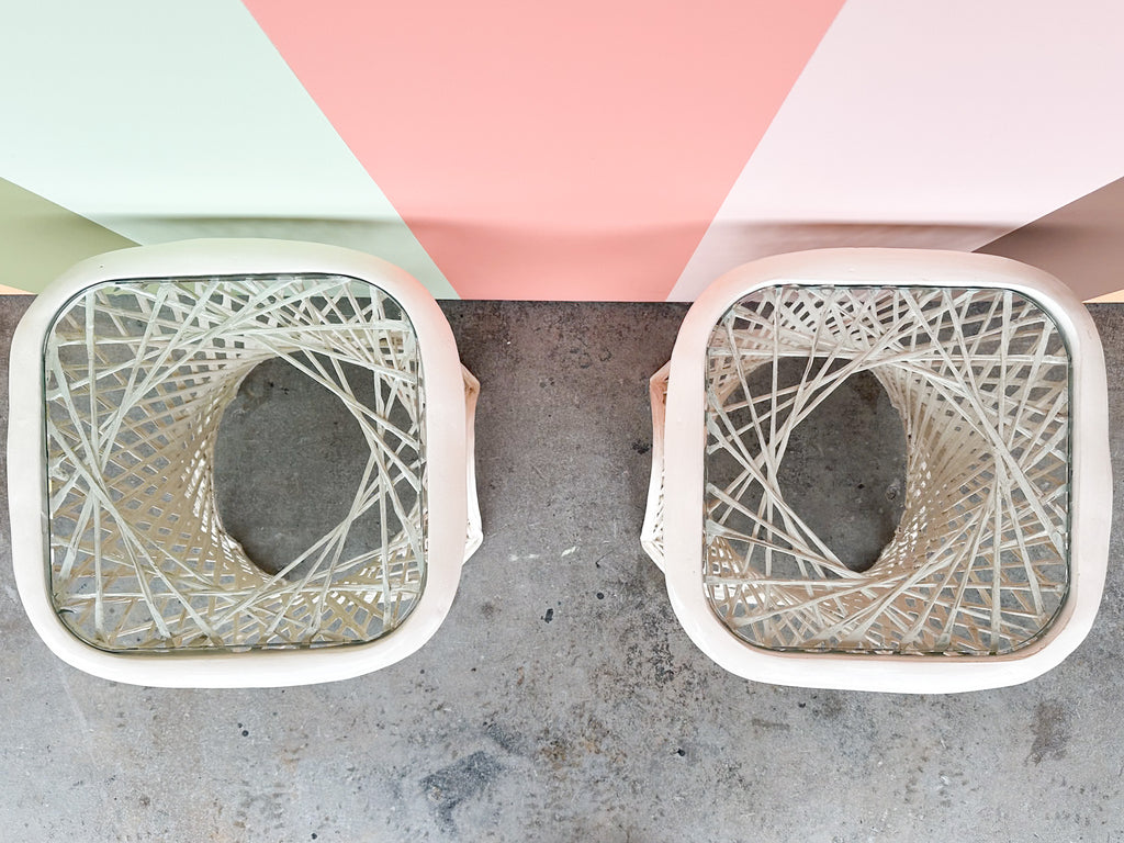 Thank you for your interest in the Pair of Russell Woodard Webspun Side Tables