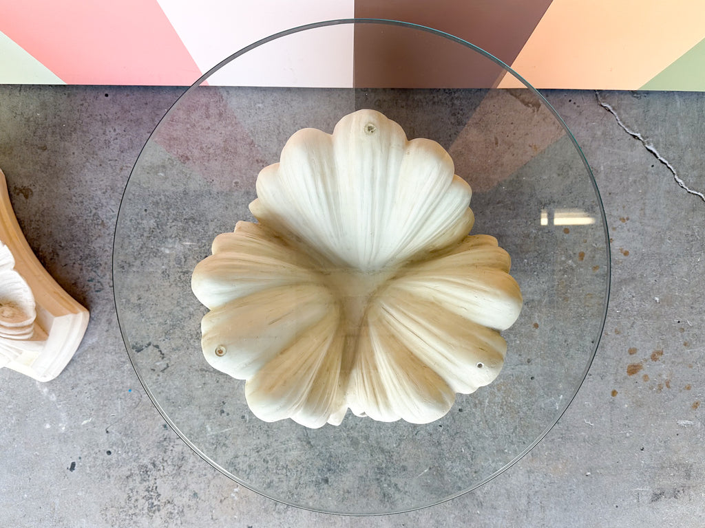 All pieces are sold in nice as found vintage condition. See photos. Dimensions:Base: H-20” W-20” L-20”Glass: H-0.3" W-26" L-26"