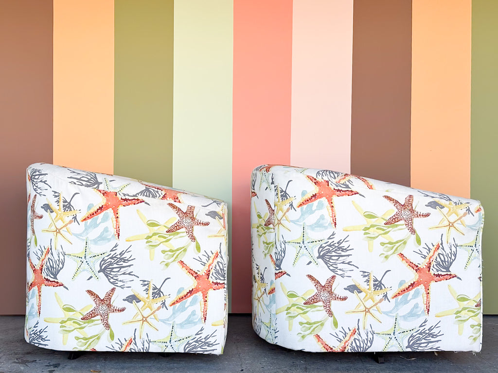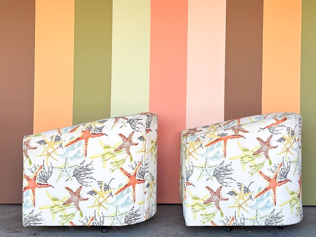 Thank you for your interest in the Pair of Starfish Upholstered Swivel Chairs