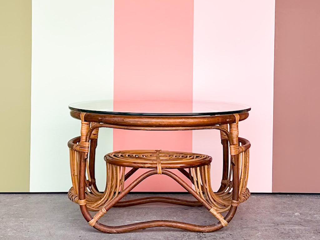 All pieces are sold in nice as found vintage condition. See photos. Dimensions: H-15.5” W-24” L-24”