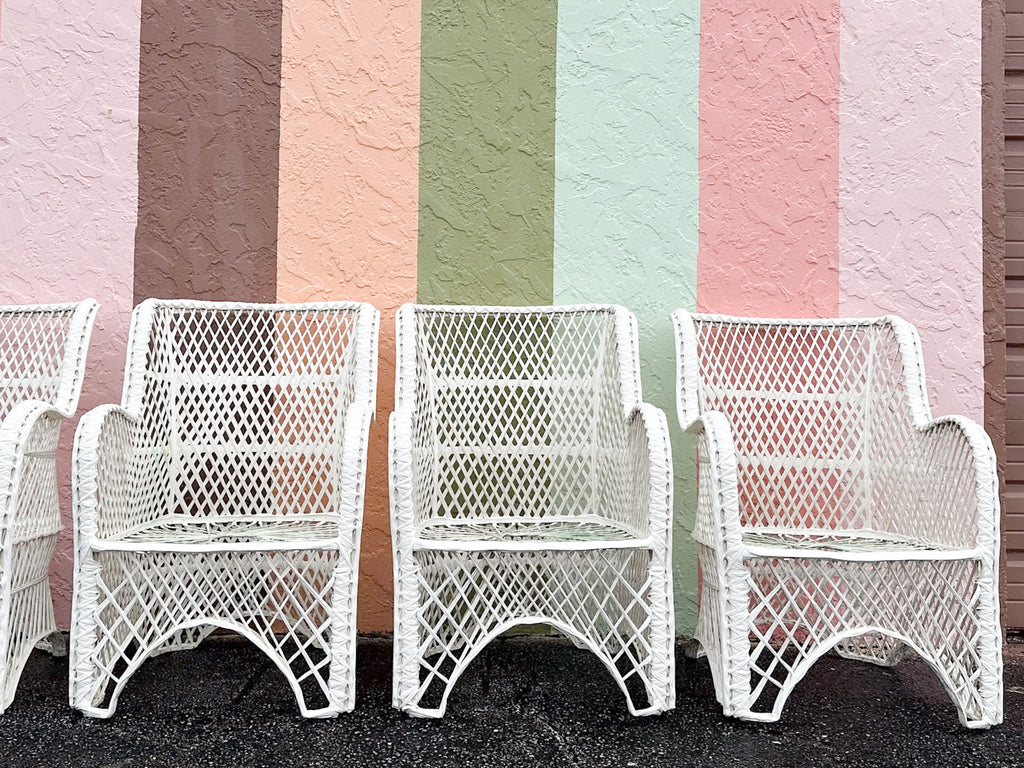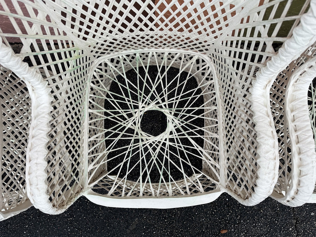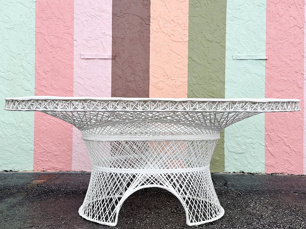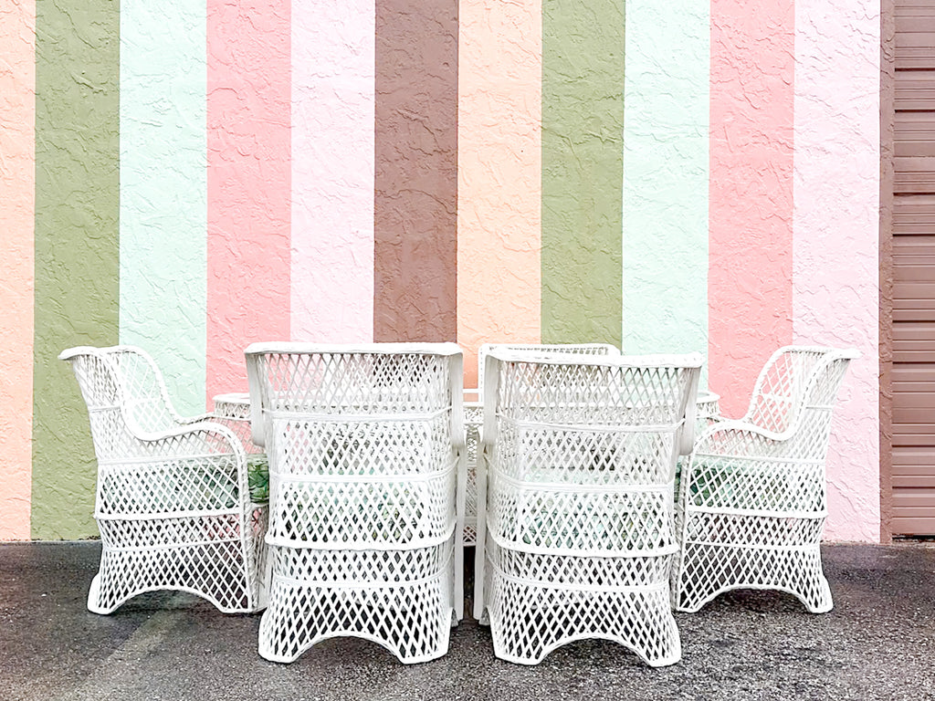 All pieces are sold in nice as found vintage condition. See photos. Dimensions: Table: H-29” W-45.5” L-74”Chairs: H-36.5" W-30" L-25.5" Seat H-20" Arm H-26.5"