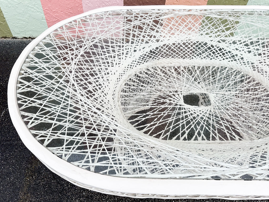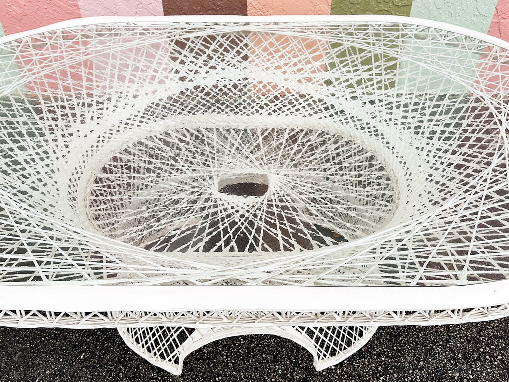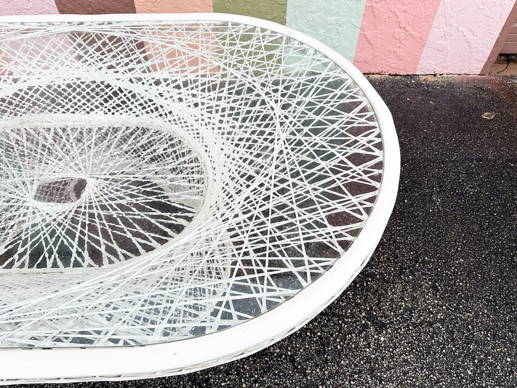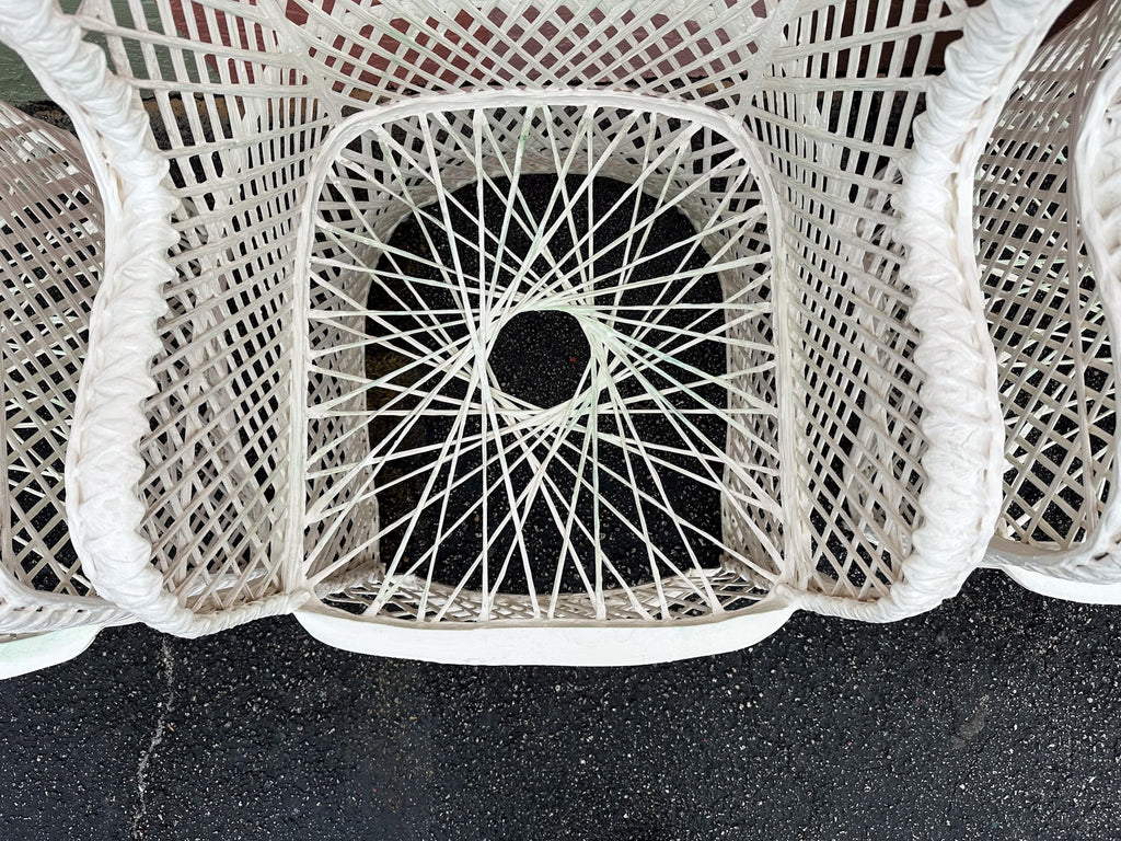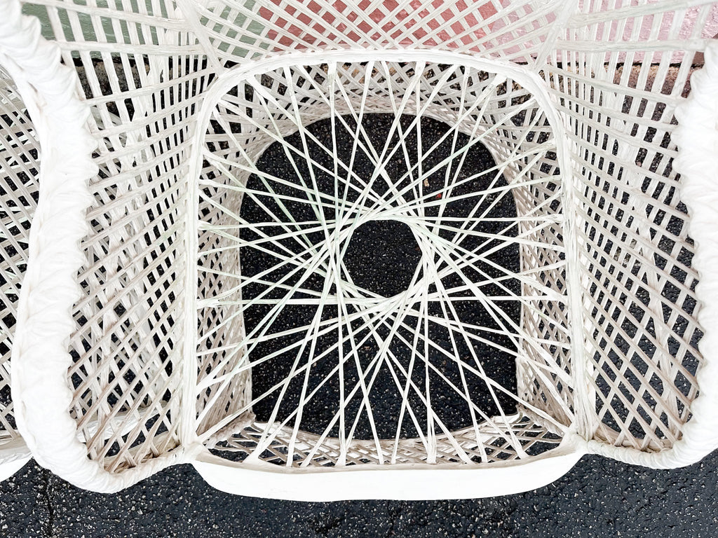 All pieces are sold in nice as found vintage condition. See photos. Dimensions: Table: H-29” W-45.5” L-74”Chairs: H-36.5" W-30" L-25.5" Seat H-20" Arm H-26.5"