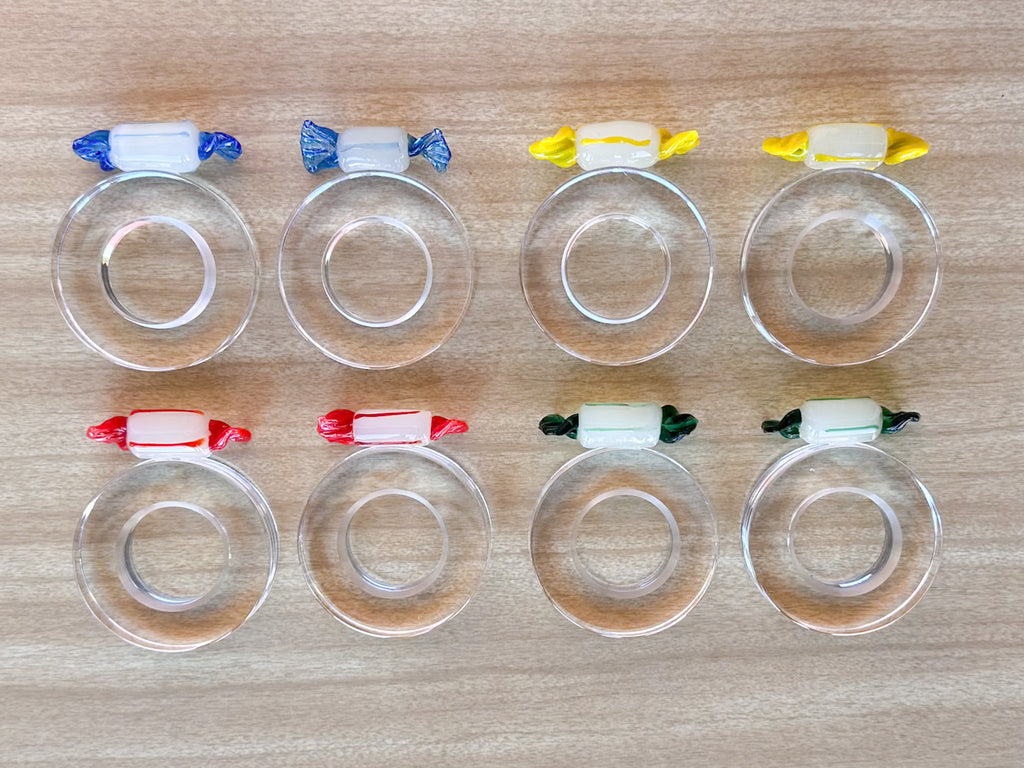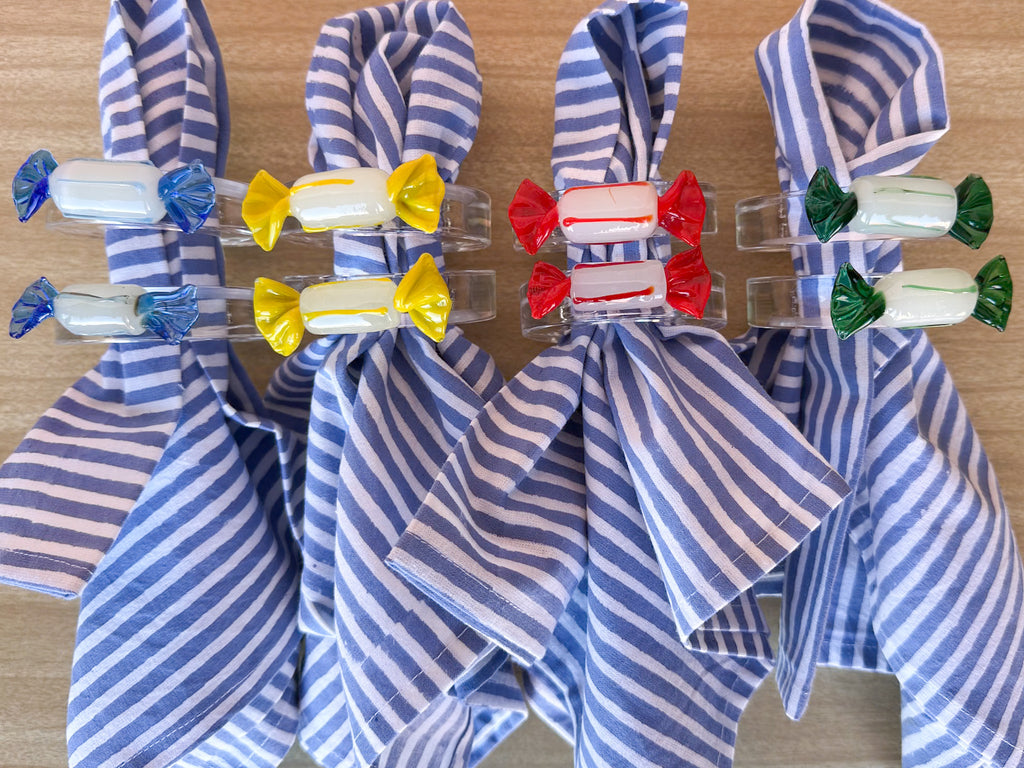 Thank you for your interest in the Set of Eight Murano Glass Candy Napkin Rings