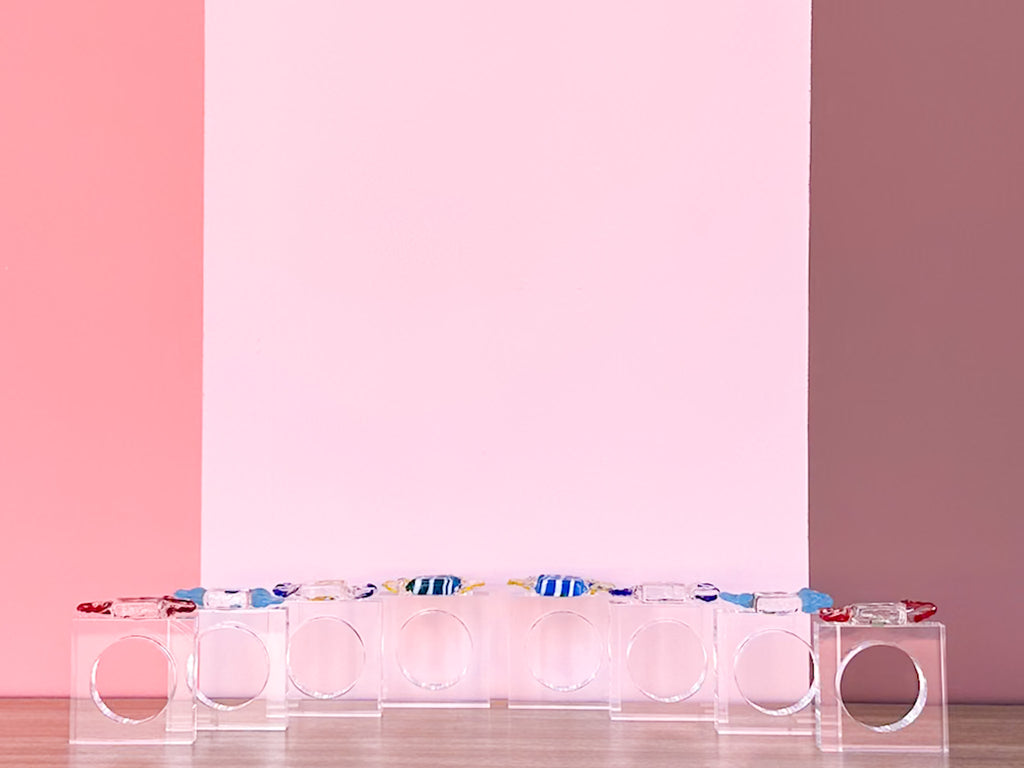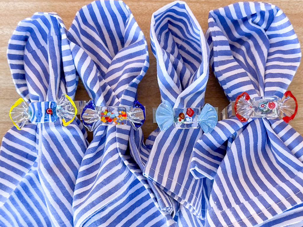 Thank you for your interest in the Set of Eight Murano Glass Candy Napkin Rings
