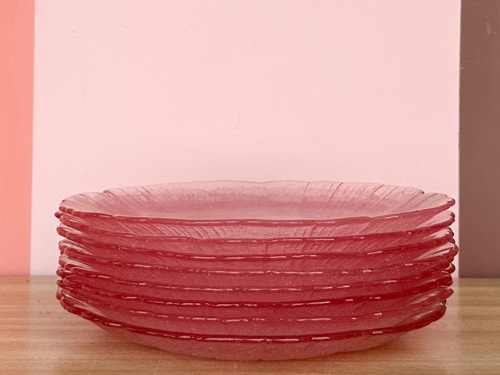 Thank you for your interest in the Set of Eight Seeded Glass Petal Pink Plates