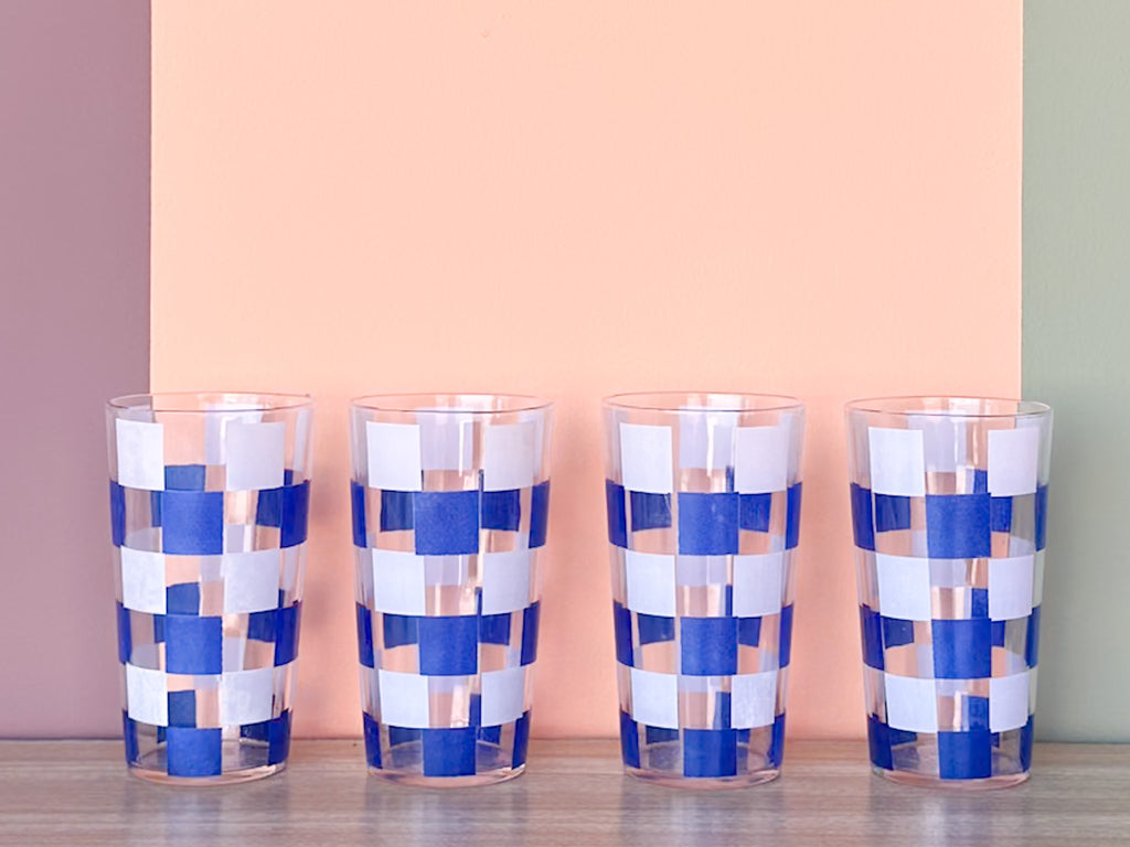 Thank you for your interest in the Set of Six Blue and White Gingham Glasses and Ice Bucket