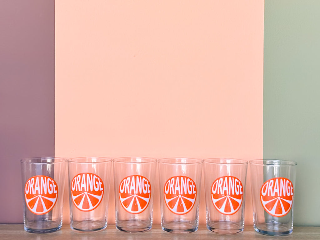 All pieces are sold in nice as found vintage condition. See photos. Dimensions: Pitcher: H-9” W-4.5” L-4.5”Glasses: H-4" W-2.5 L-2.5"