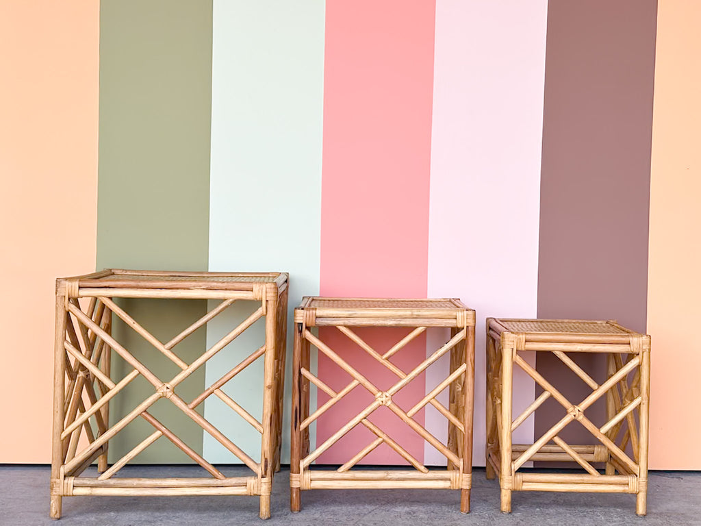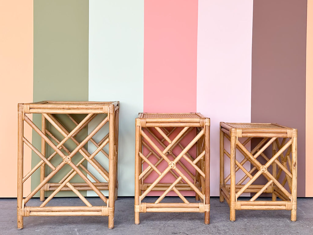 All pieces are sold in nice as found vintage condition. See photos. Dimensions: Small: H-17.75” W-12.5” L-14”Medium: H-19.5" W-14" L-17.5"Large: H-22.25" W-17" L-20"