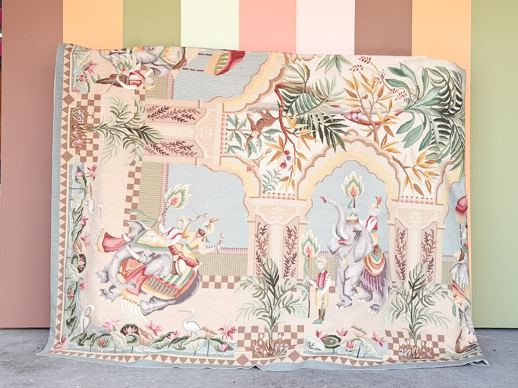 Thank you for your interest in the Whimsical Elephant and Monkey Needlepoint Rug