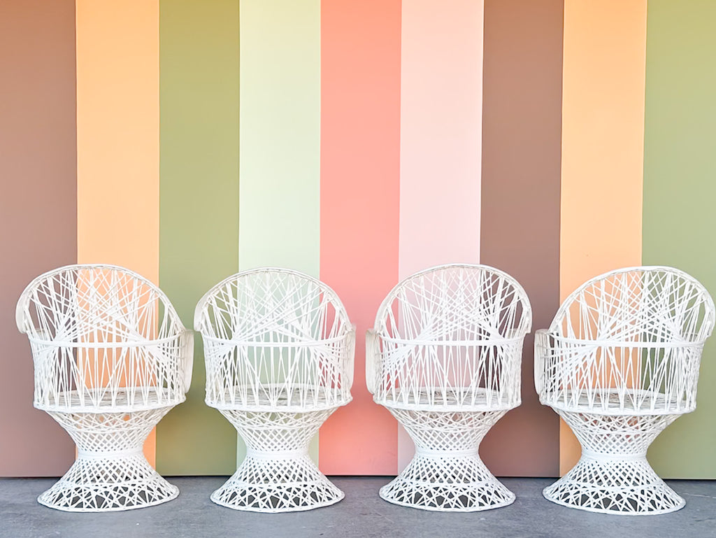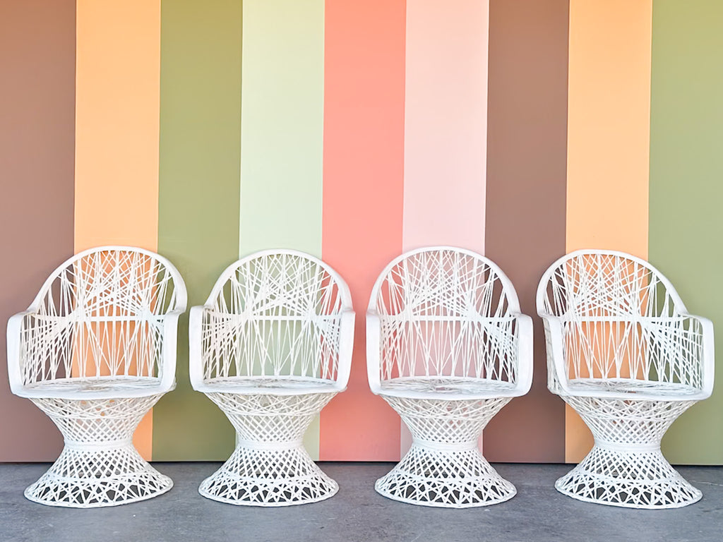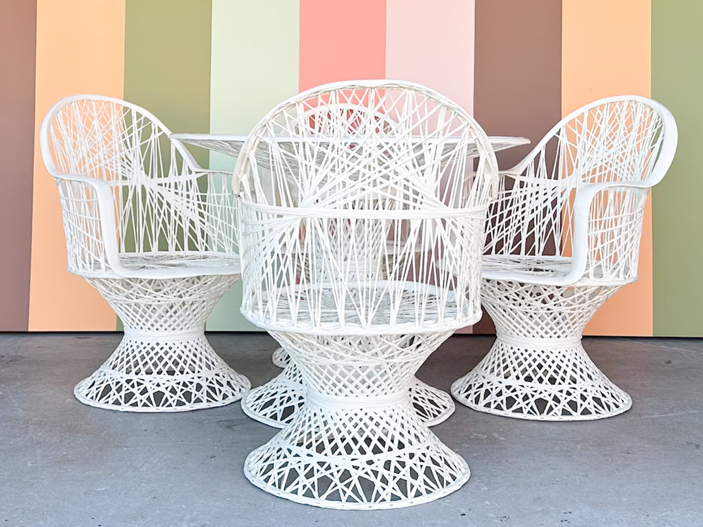 All pieces are sold in nice as found vintage condition. See photos. Dimensions: Table: H-29” W-38” L-38”Chairs: H-32.5" W-23 L-22" Seat H-16" Arm H-24"
